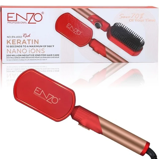 موی سر یکی از مهمترین عوامل زیبایی در افراد بوده و لازم است تا مراقبت ویژه ای از آن شود. معمولا استفاده همزمان از برس و سشوار کمی زمان بر است. اما با تولید و عرضه انواع برس حرارتی در چند سال اخیر این مشکل تا حدود زیادی برطرف شده است. برس حرارتی فوق حرفه ای اورجینال ENZO مدل EN-4002 یک محصول فوق العاده و جایگزین مناسبی برای ترکیب برس و سشوار است. این محصول فوق العاده دارای بدنه محکم و نشکن و در رنگ طلایی و صورتی در بازار موجود است. دندانه های برس با جدیدترین تکنولوژی و طراحی خاصی که دارند به راحتی بین موها قرار می گیرند. این دندانه ها نانو سرامیکی با نوک عایق بندی شده به موها آسیب نمی رسانند و مخصوص صاف کردن موهای سر می باشد. این برس دارای حرفه ای ترین و جدیدترین تکنولوژی می باشد. همچنین دارای 200 میلیون یون منفی جهت محافظت بیشتر موها و سیستم درخشش موها بعد از استفاده می باشد.